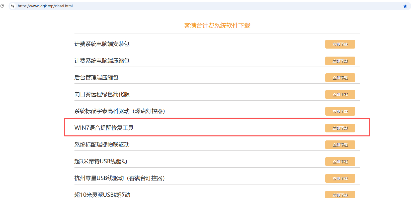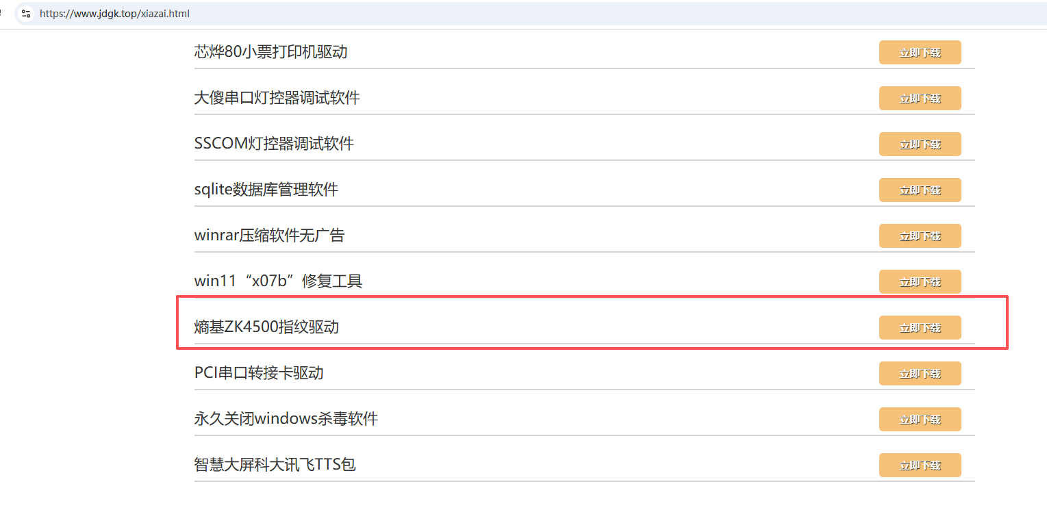 2、如果电脑是win7,官网https://www.jdgk.top/xiazai.html,下载中心,往下滑找到WIN7语音提醒修复工具,下载并安装;熵基ZK4500指纹驱动,下载并安装。