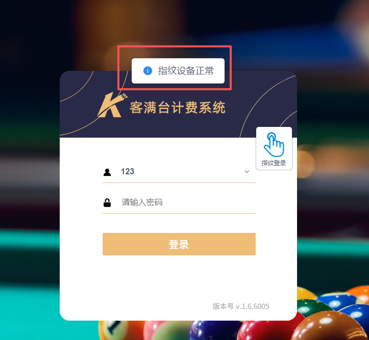 4、再次打开系统,登录界面提示指纹设置正常,即可使用