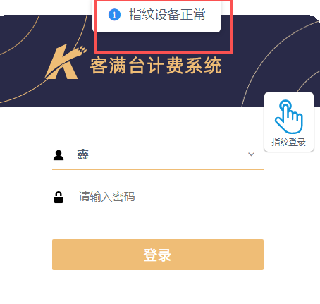 4、每次系统登录再登录界面会提示指纹仪正常,进入指纹仪界面按下指纹,每次都会亮白灯,不亮灯可能就是没插好;
