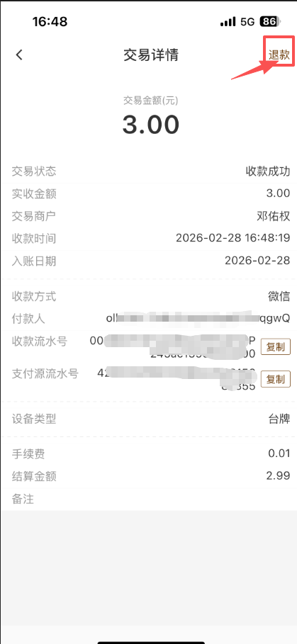 固码收款后斗拱管家如何退款?