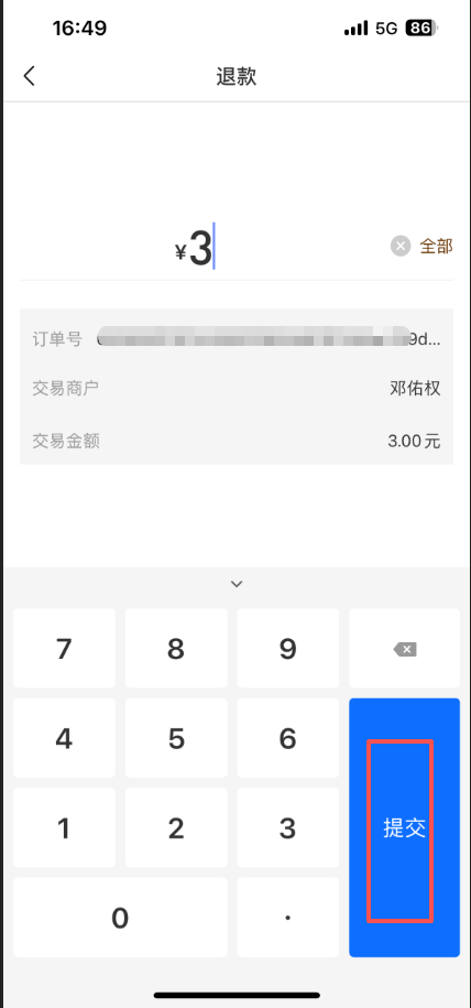 3、输入退款金额点击提交