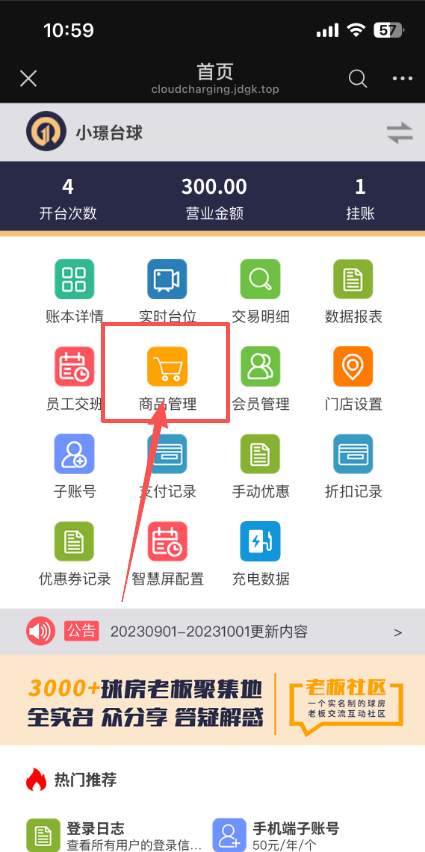 1、进入到老板端界面,点击商品管理