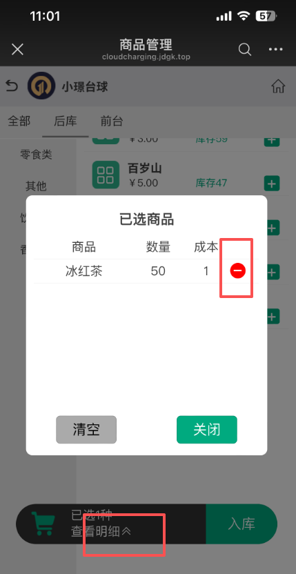 5、入库之前,点击明细旁边的箭头,入错可以删除商品