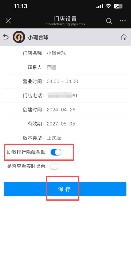2、助教排行隐藏金额,如果打开助教就能看到,关闭助教就不能查看,点击保存