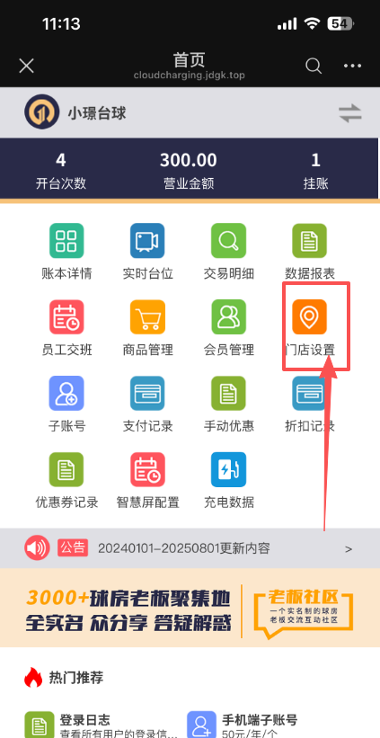 1、进入老板端,点击门店设置