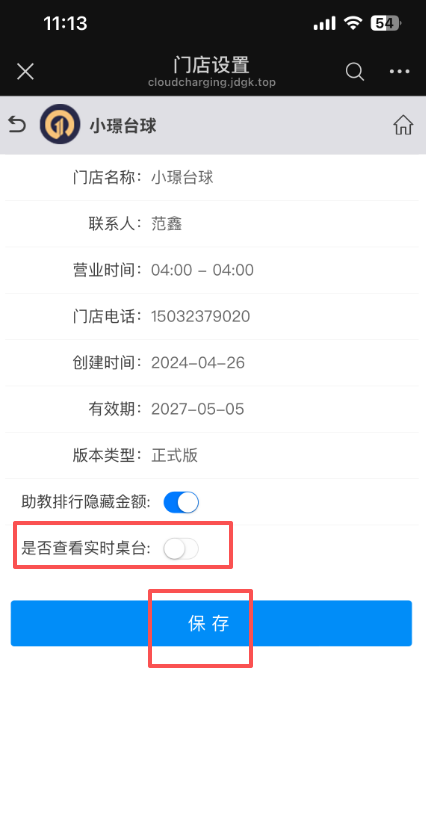 2、最后一个选项,是否查看实时桌台,选上会员就可以查看,关闭会员就查看不了,点击保存
