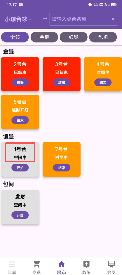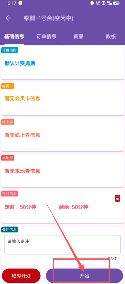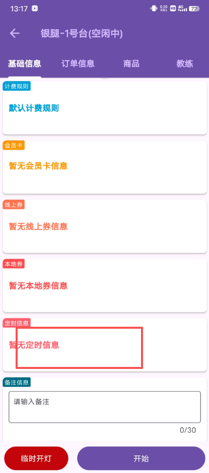 4、然后再点击开始即可定时开灯。开灯后也可以定时,跟第二步是一样的,点击进入桌台界面选择定时信息进行设置即可