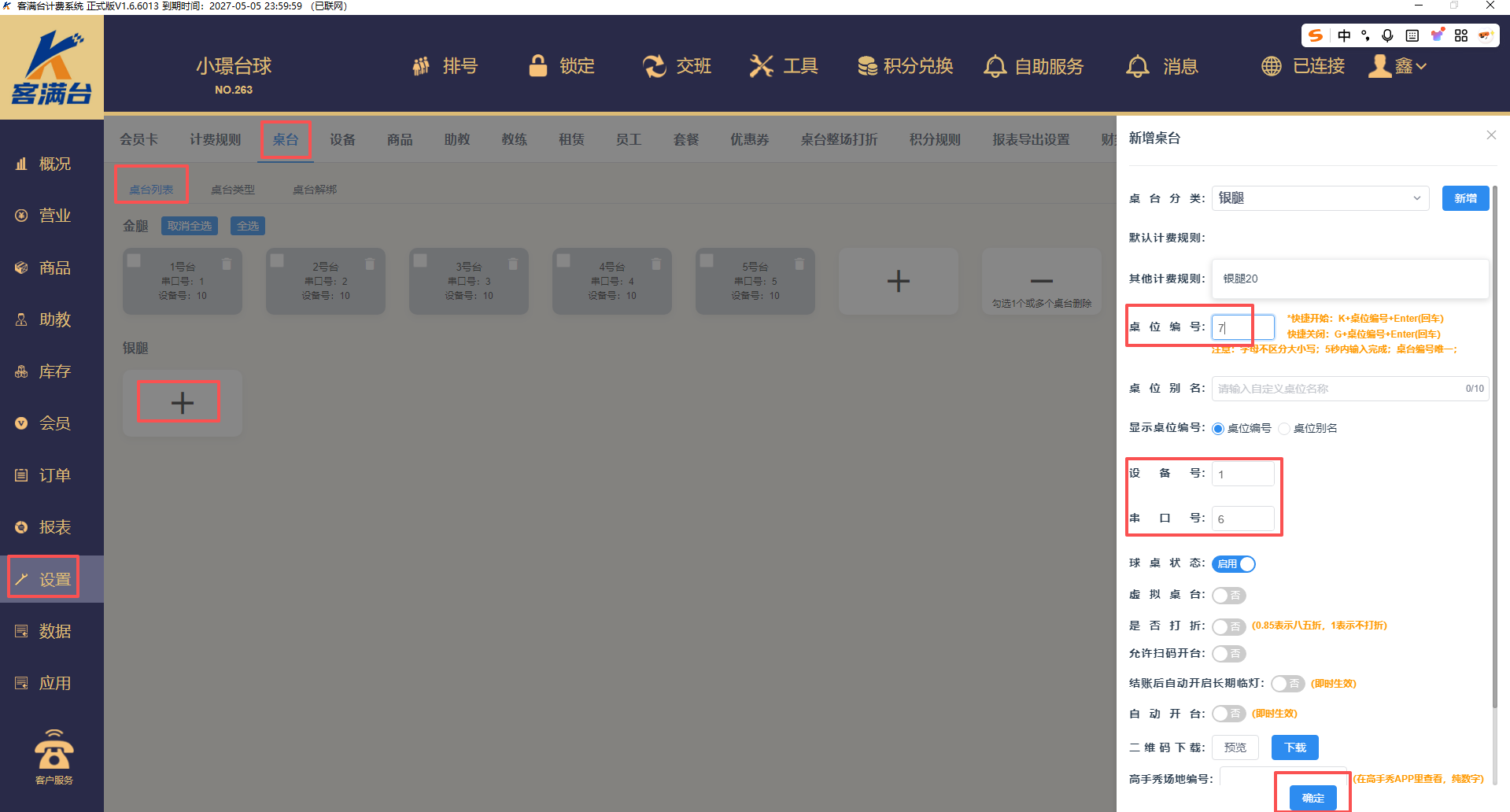 例如银腿桌子,输入桌位编号(场馆一定要提前排好桌子的顺序)