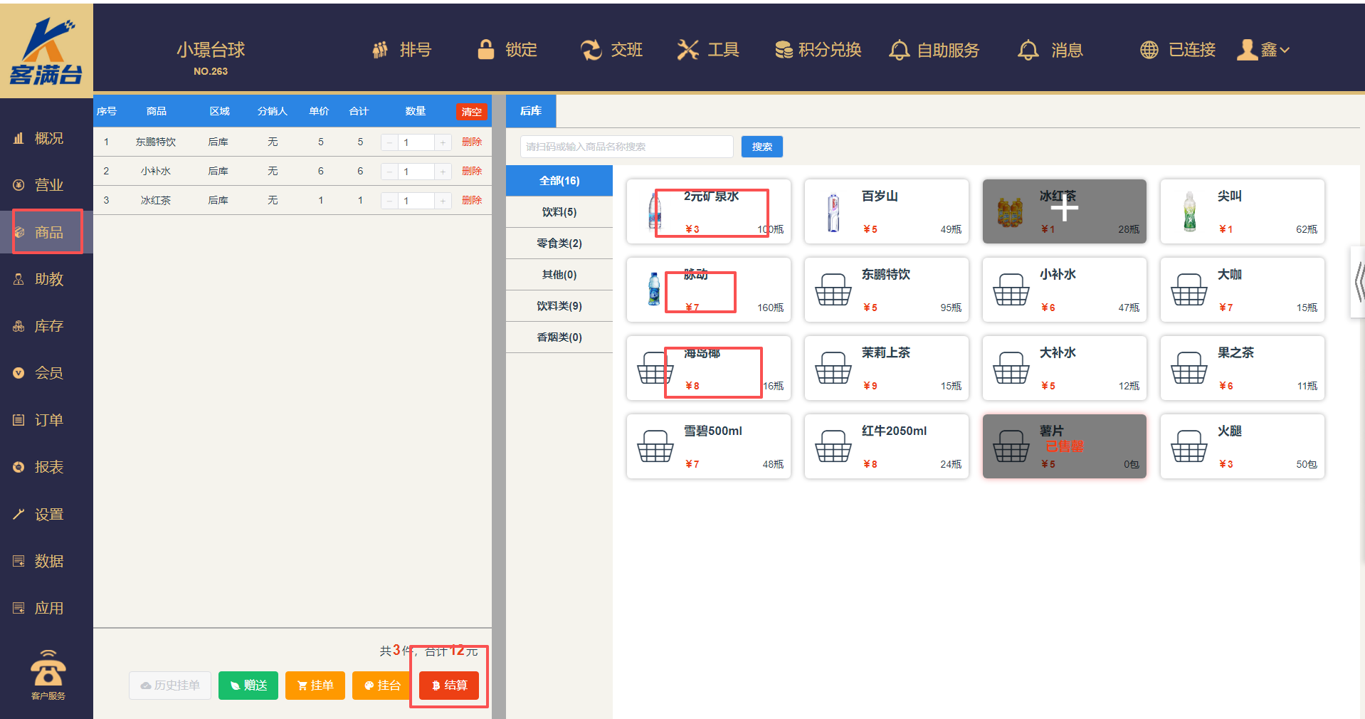 在商品页面,单击商品,也可以选择多个商品,将商品添加到左边购物车