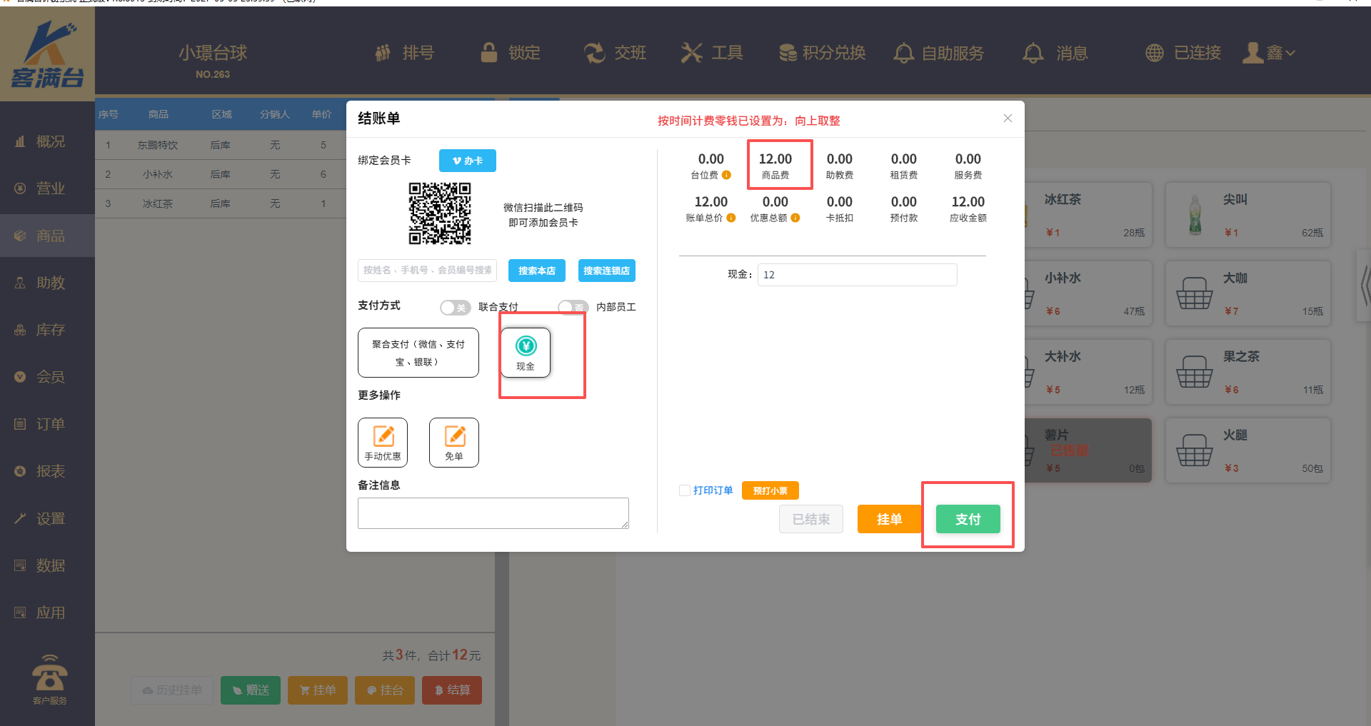 点击【结算】按钮,选择对应支付方式点击支付即可