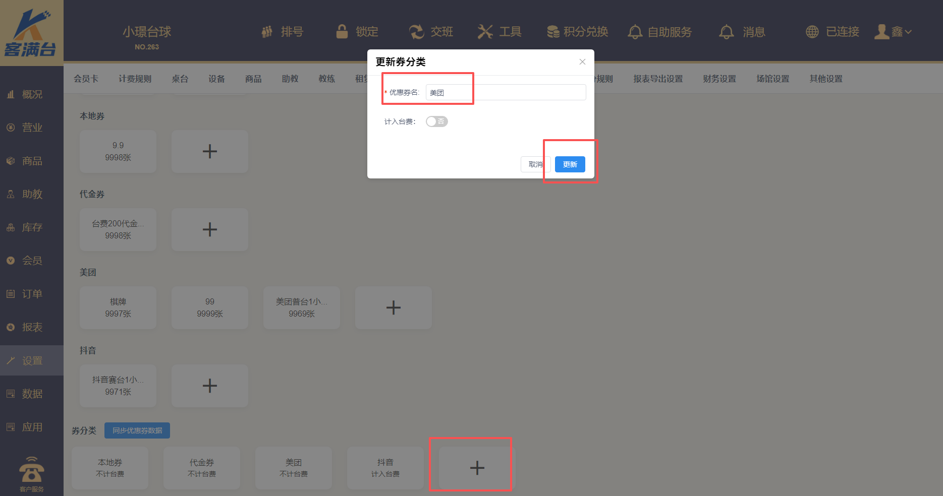 1、设置,优惠券,券分类,新增券分类,例如美团、抖音等