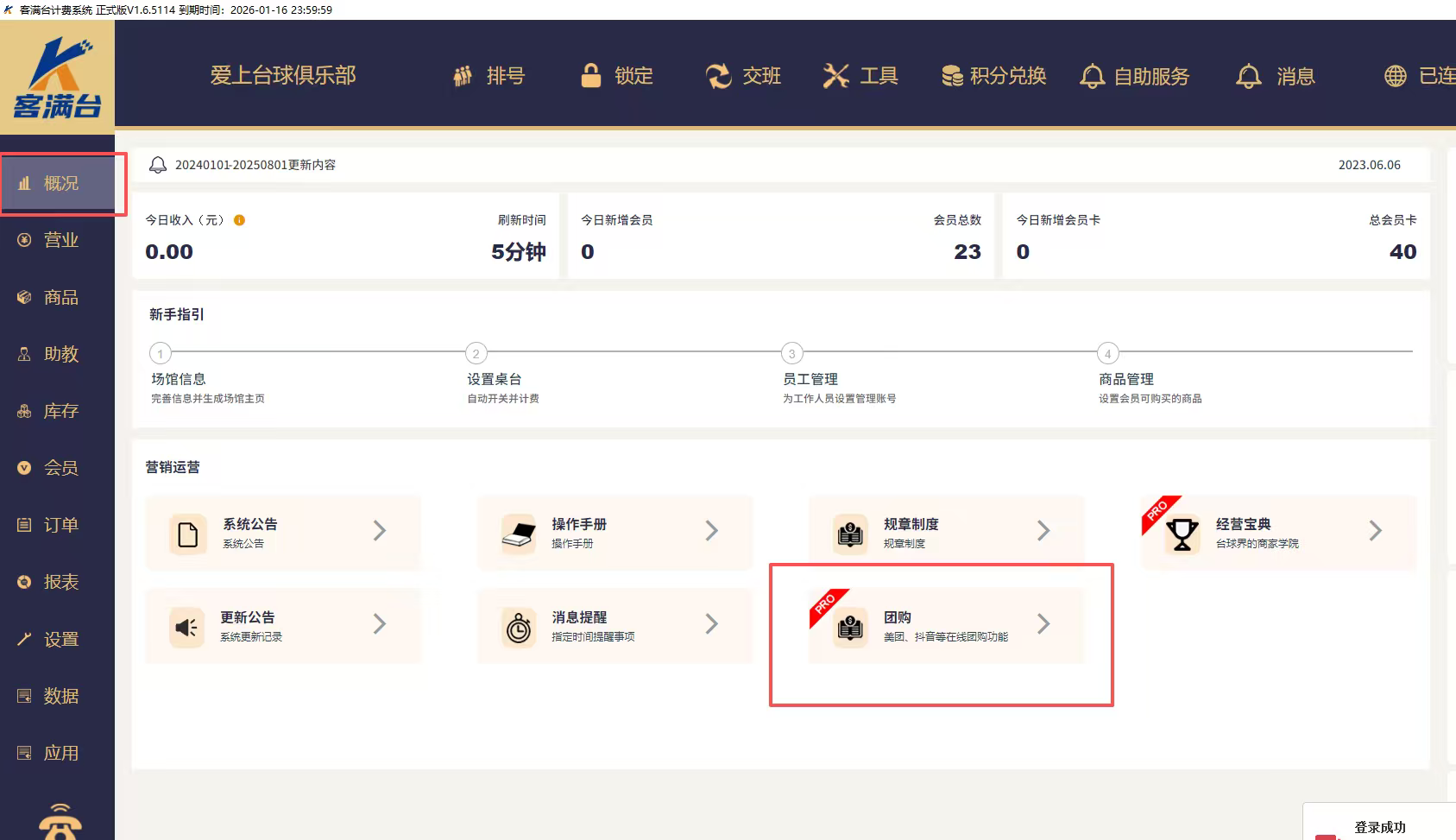 概况,团购,点击去授权,登录美团开店宝和抖音来客账号进行授权