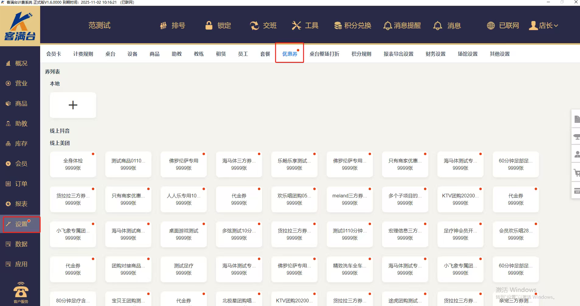 2、授权后,设置,优惠券,所有的券就会同步过来
