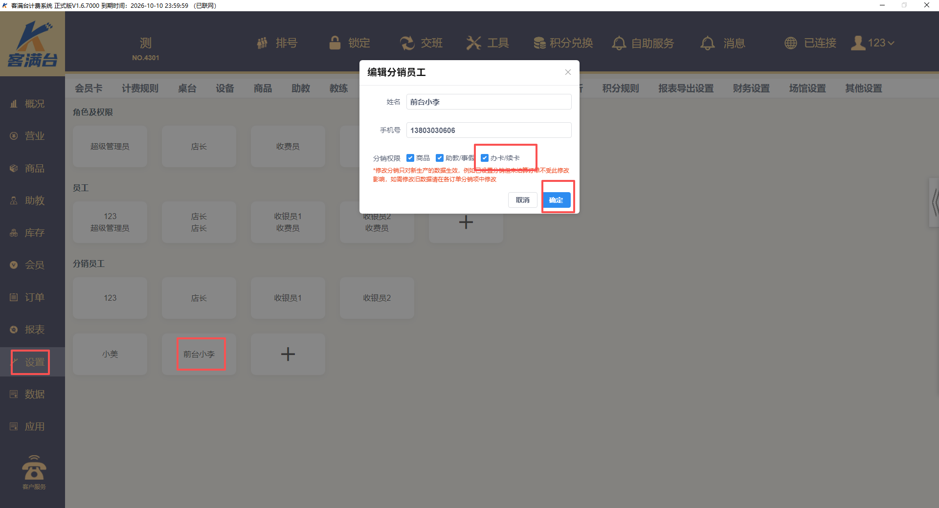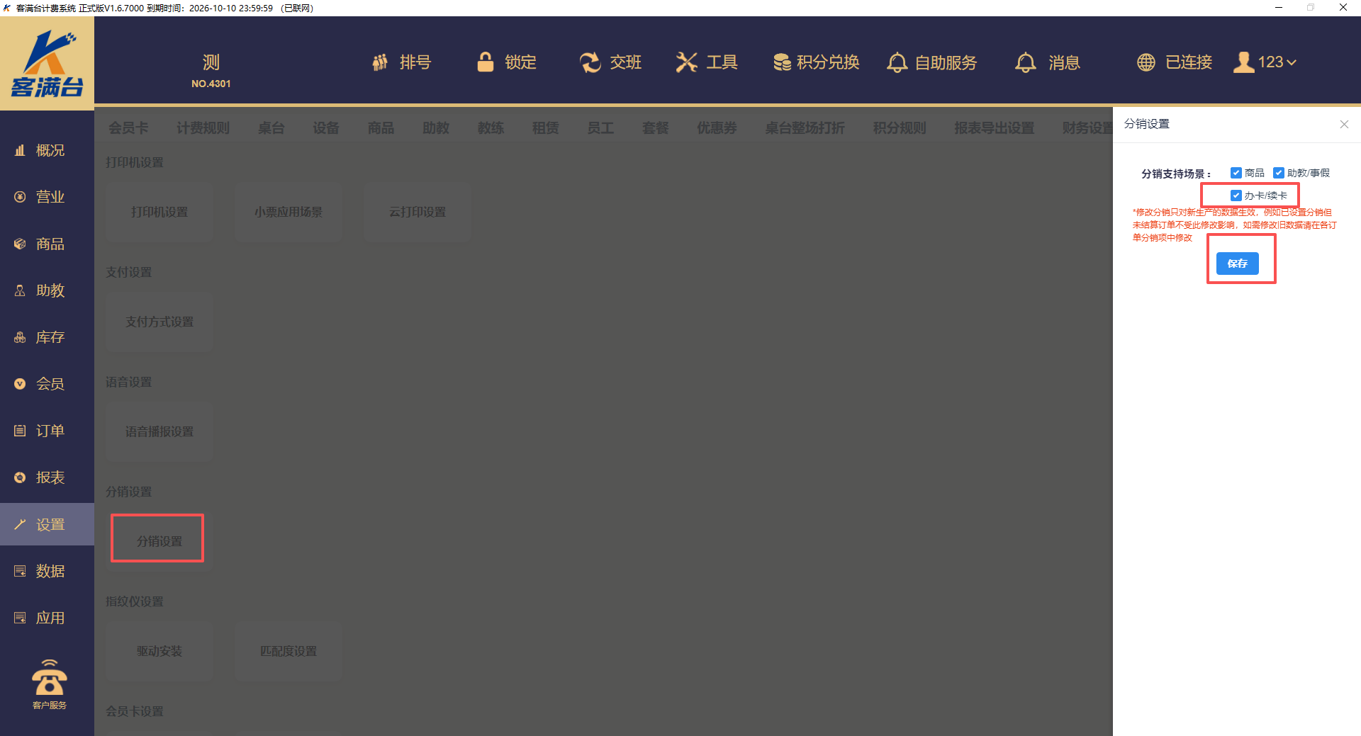 1、设置,其他设置,分销设置,把办卡勾上,点击保存