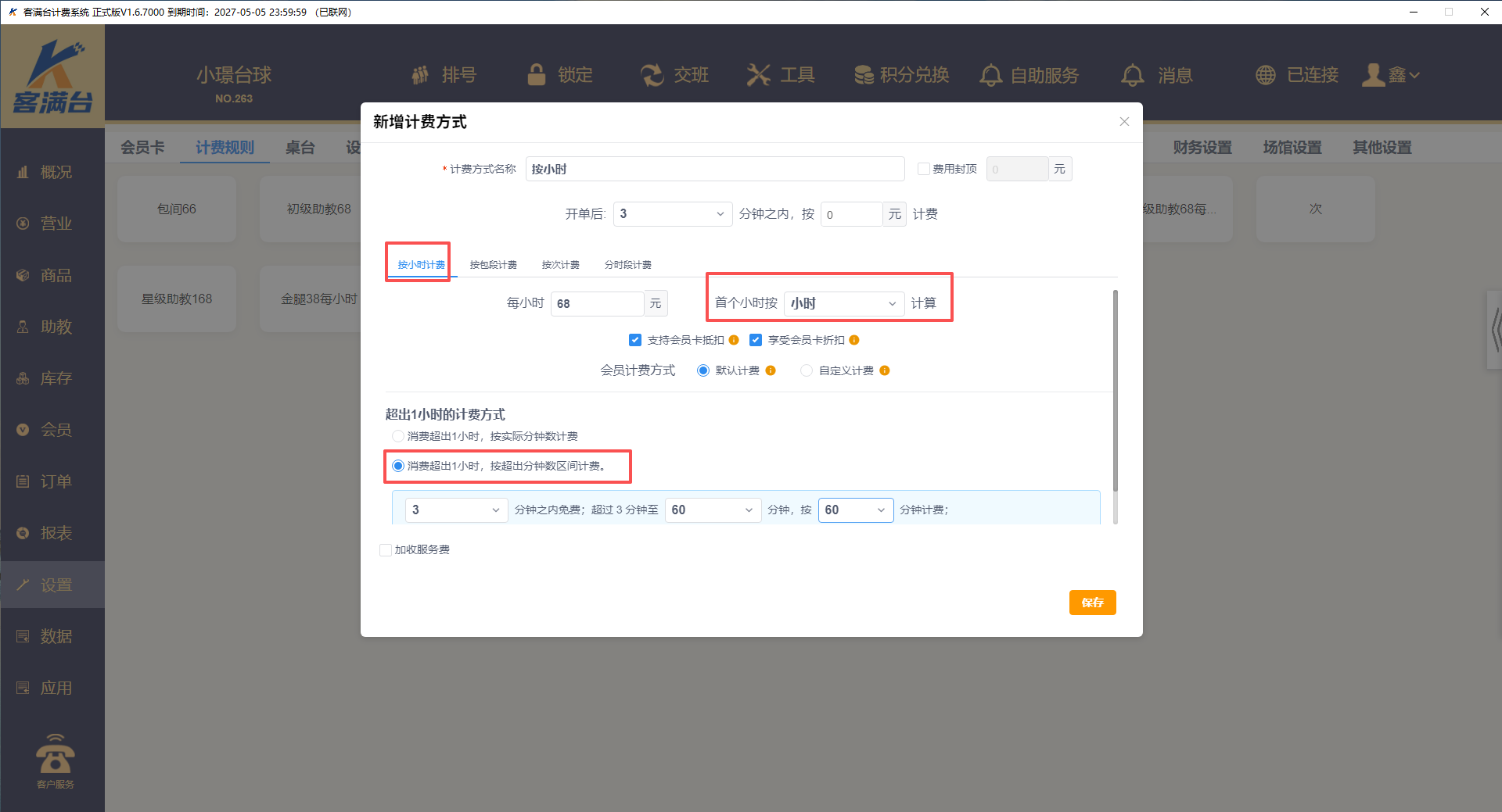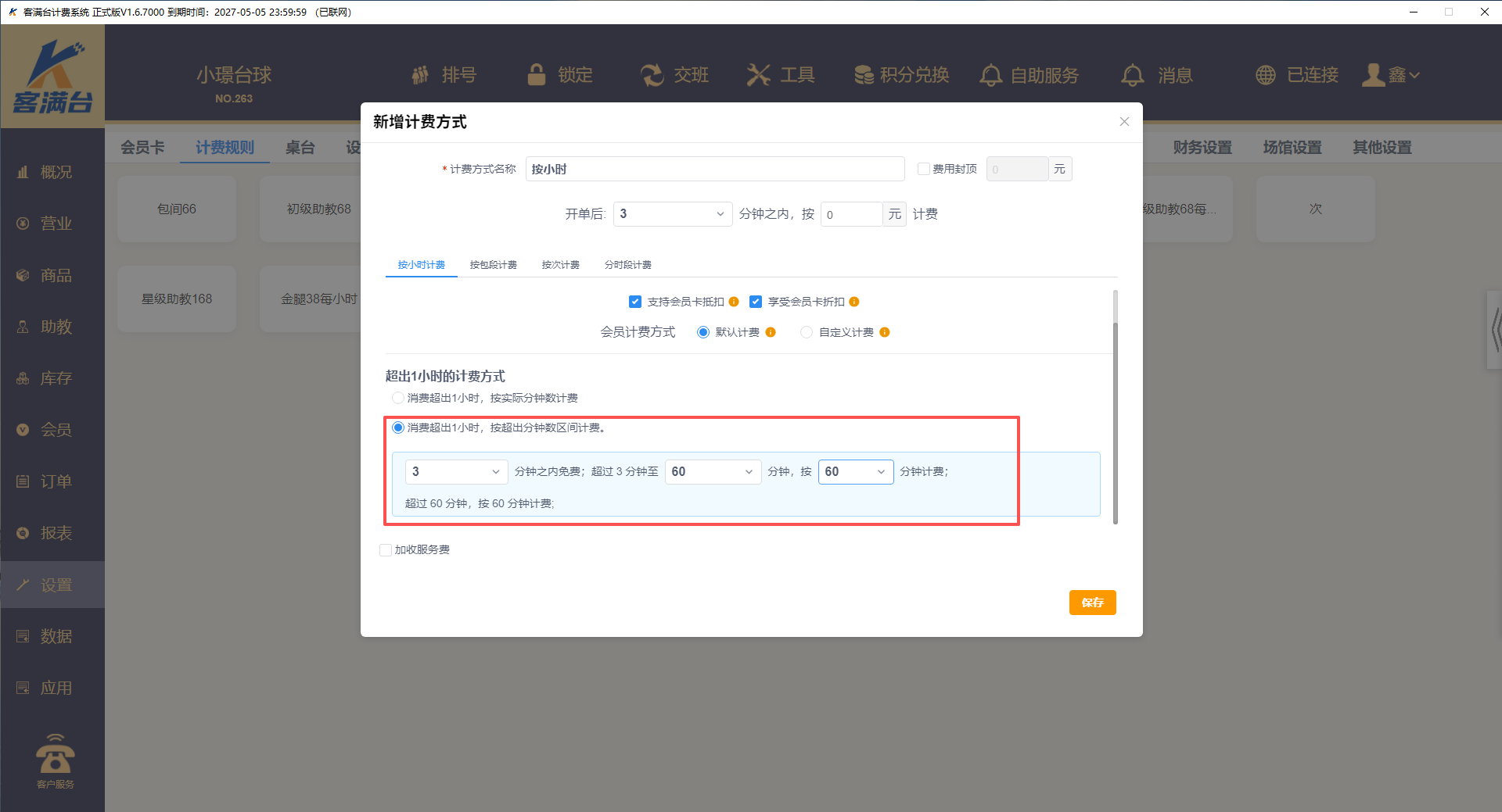 如何设置按小时计费,按整小时收费,不满1小时按1小时收费